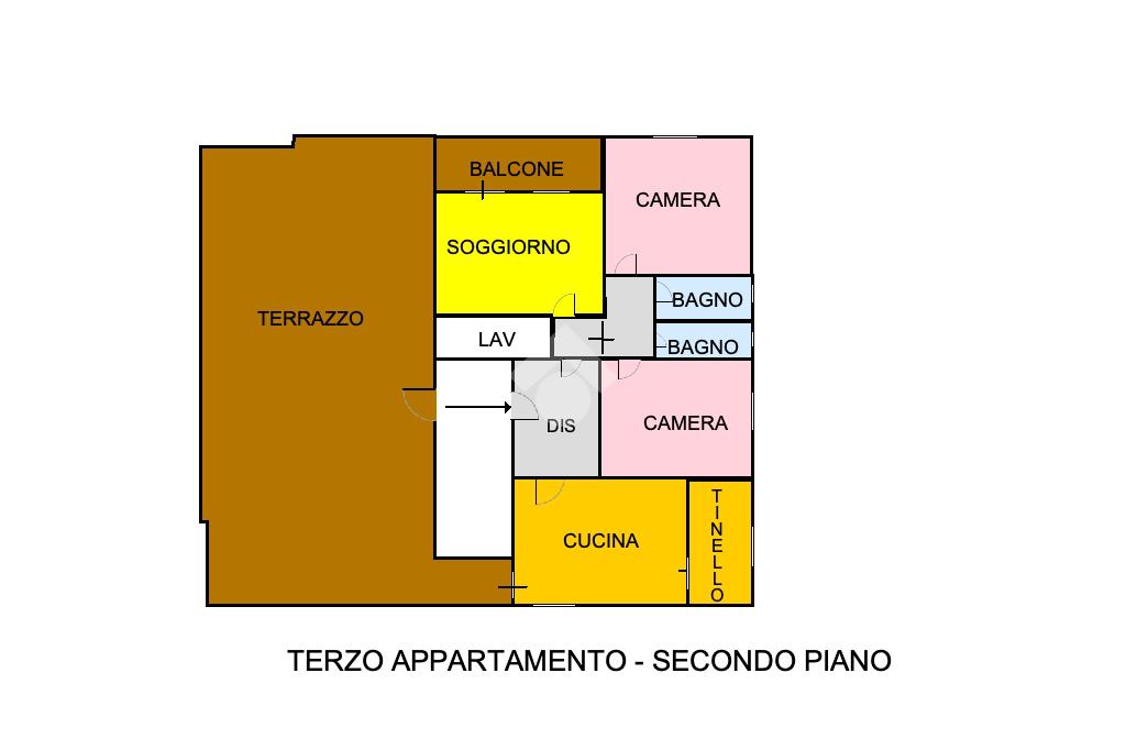 Nella scala c'è un secondo portoncino che da accesso al terrazzo a livello, avendo cosi la possibilità di poter essere utilizzato eventualmente anche dagli altri appartamenti.