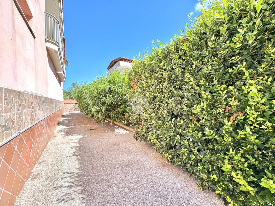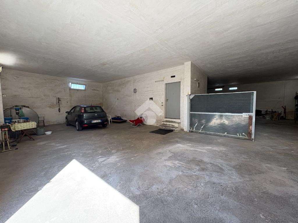 Il fabbricato è sviluppato su due piani: al piano terra troviamo un ampio garage con una superficie di circa 205 mq e spazio esterno che circonda tutto il fabbricato, in parte asfaltato e in parte pavimentato e adornato da aiuole e alberi.