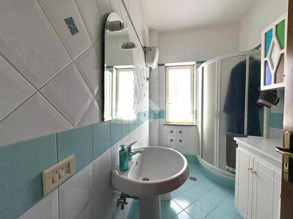 Al secondo piano: l'ingresso di questo immobile è nel disimpegno, la soluzione si compone di una cucina abitabile con cucinotto separato, con affaccio su un ampio terrazzo a livello di circa 110 mq. Il salone ha un doppio punto luce con affaccio sul balcone. La zona notte è composta da due camere da letto e due bagni, uno con vasca e l'altro con doccia, inoltre anche in questa soluzione troviamo un comodo ripostiglio.